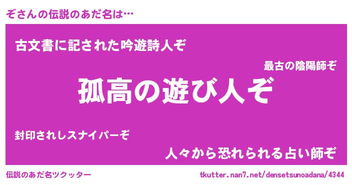 | 男性向けラノベタイトル風あだ名 | 『魔弾の王とぞ』 |