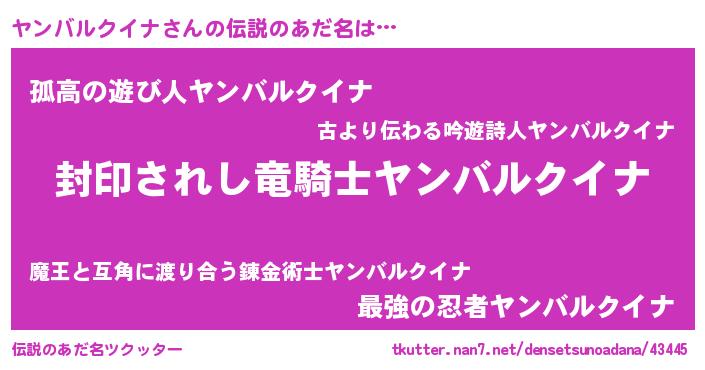 | 意味不明あだ名 | 『住所不定無職ヤンバルクイナ(3歳)』 |