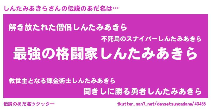 | 肩書あだ名 | 『しんたみあきら中佐』 |