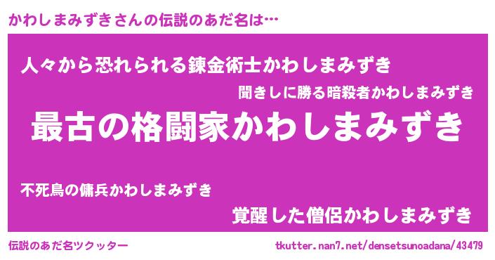 | ヒーロー風カッコイイあだ名 | 『ウルトラかわしまみずきマン』 |