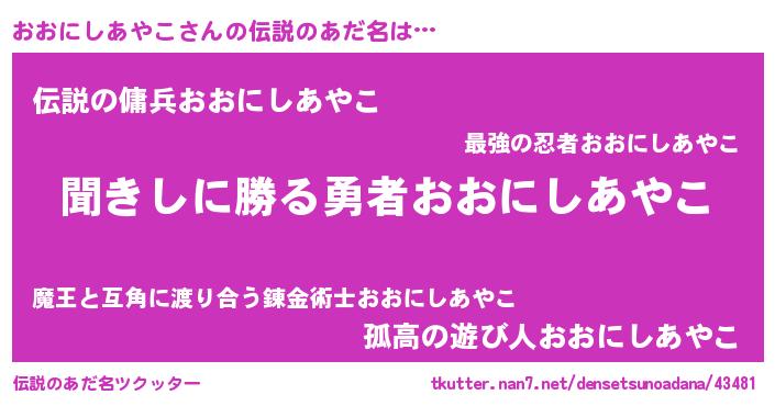 | 意味不明あだ名 | 『自称おおにしあやこ』 |