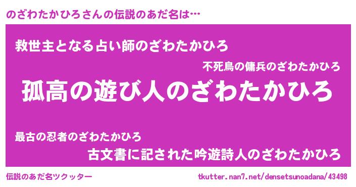 | 意味不明あだ名 | 『とにかく怪しいのざわたかひろ』 |