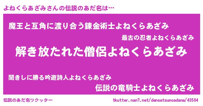 | 欧米人風あだ名 | 『ウサインよねくらあざみ』 |