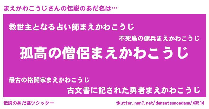 | 女子向けラノベタイトル風あだ名 | 『まえかわこうじは平凡を望む』 |
