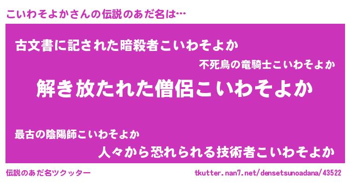 | 意味不明あだ名 | 『とにかく怪しいこいわそよか』 |