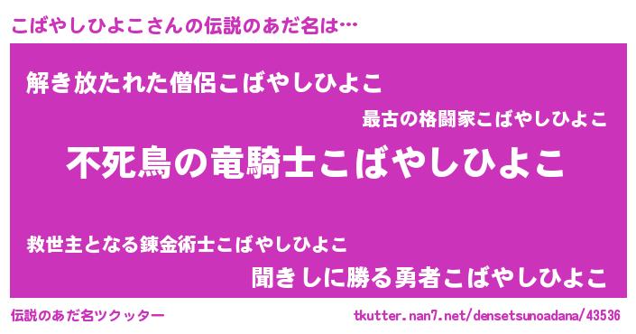 | ヒーロー風カッコイイあだ名 | 『スーパーコバヤシヒヨコ』 |