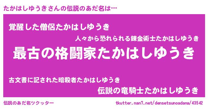 | ファンタジー風あだ名 | 『エターナルタカハシユウキー』 |