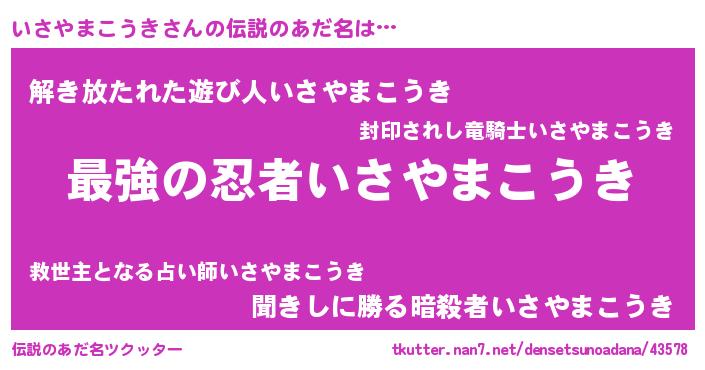 | ファンタジー風あだ名 | 『エターナルイサヤマコウキー』 |