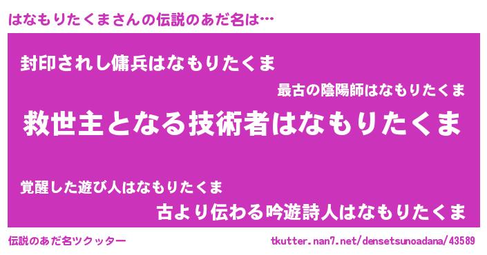 | ヒーロー風カッコイイあだ名 | 『天空の使者はなもりたくま』 |