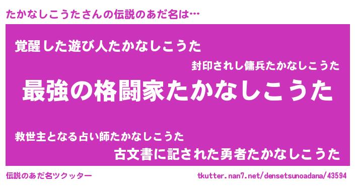 | 意味不明あだ名 | 『自称たかなしこうた』 |
