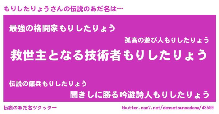 | 意味不明あだ名 | 『自称もりしたりょう』 |