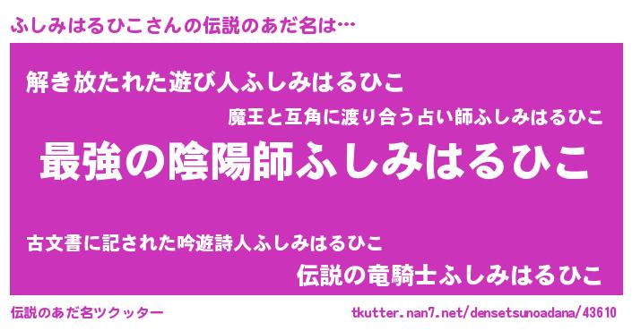 | ファンタジー風あだ名 | 『エターナルフシミハルヒコー』 |