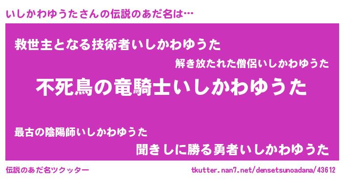 | ヘコむあだ名 | 『いしにー』『いしかわゆうた(小並感)』 |