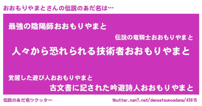 | 欧米人風あだ名 | 『アンジェラ・おおもりやまと』 |