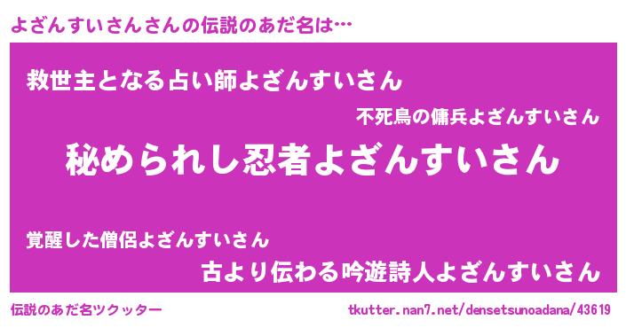 | 意味不明あだ名 | 『自称よざんすいさん』 |