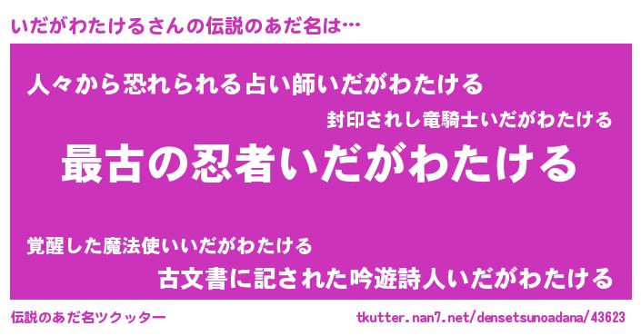 | 意味不明あだ名 | 『住所不定無職いだがわたける(59歳)』 |