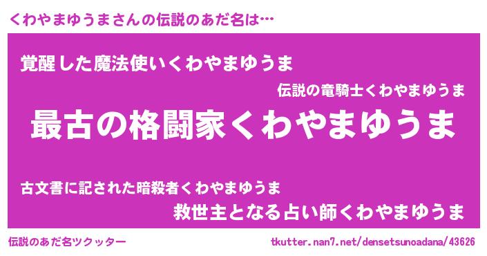 | ファンタジー風あだ名 | 『エターナルクワヤマユウマー』 |