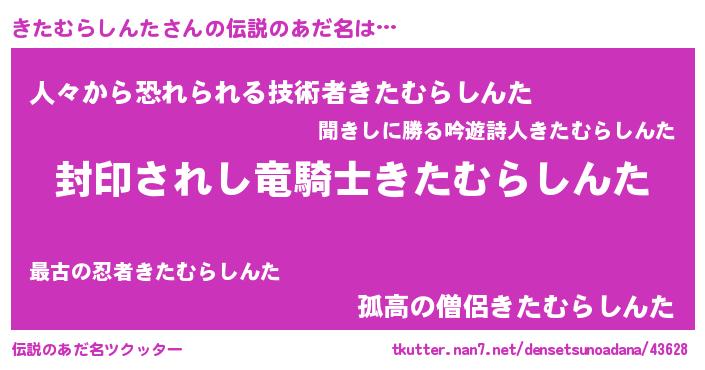 | 男性向けラノベタイトル風あだ名 | 『キタムラシンタアートオンライン』 |