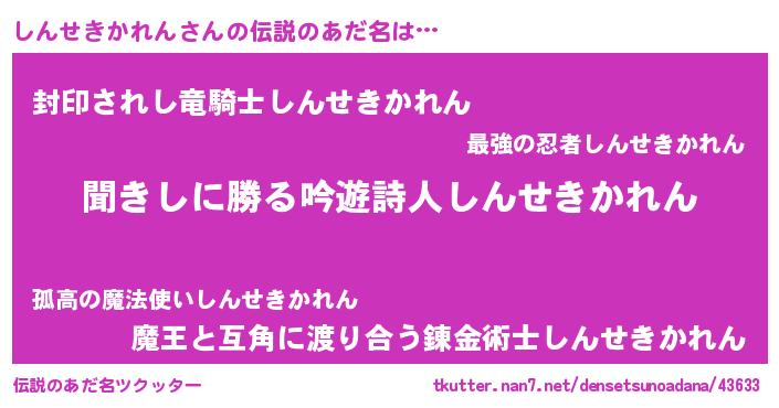 | 意味不明あだ名 | 『住所不定無職しんせきかれん(9歳)』 |