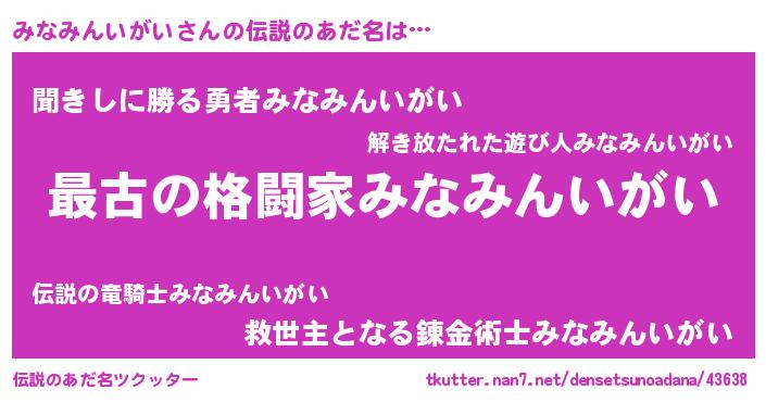 | 男性向けラノベタイトル風あだ名 | 『転生したらみなみんいがいだった件』 |