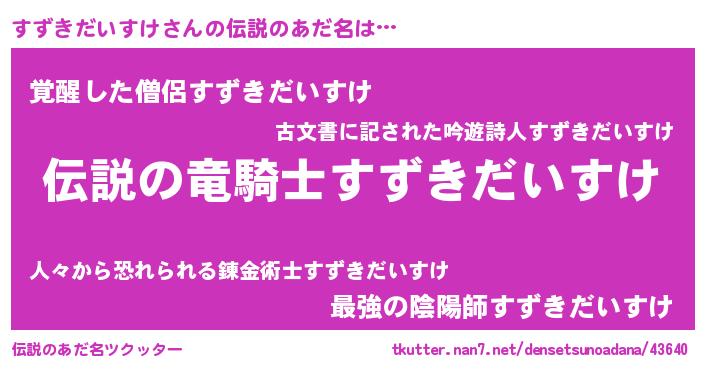 | 女子向けラノベタイトル風あだ名 | 『(仮)すずきだいすけのやんごとなき事情』 |