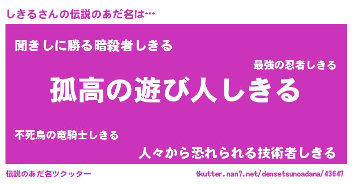 | ヒーロー風カッコイイあだ名 | 『暗黒騎士シキ』『ネオシキル』 |