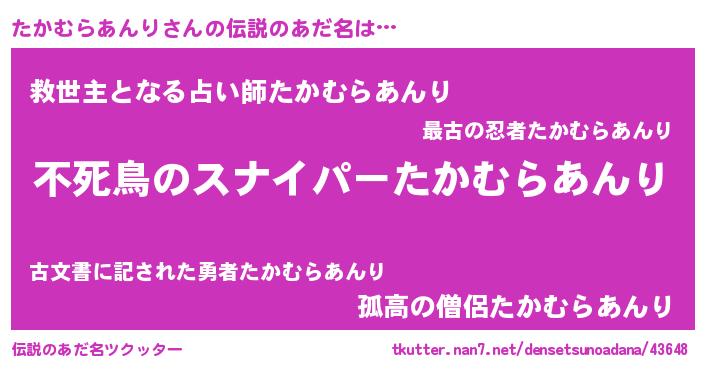 | ヒーロー風カッコイイあだ名 | 『スーパータカムラアンリ』 |