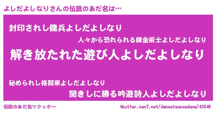 | 胡散臭い通販商品みたいなあだ名 | 『伝統あるペンダント…その名も「よしだよしなり」』 |