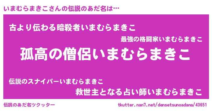 | 意味不明あだ名 | 『とにかく怪しいいまむらまきこ』 |