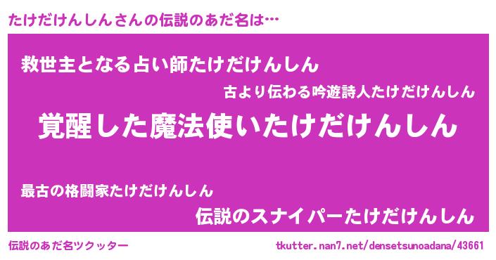 | ヒーロー風カッコイイあだ名 | 『幻影騎士タケ』『ネオタケダケンシン』 |