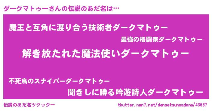 | 意味不明あだ名 | 『とにかく怪しいダークマトゥー』 |