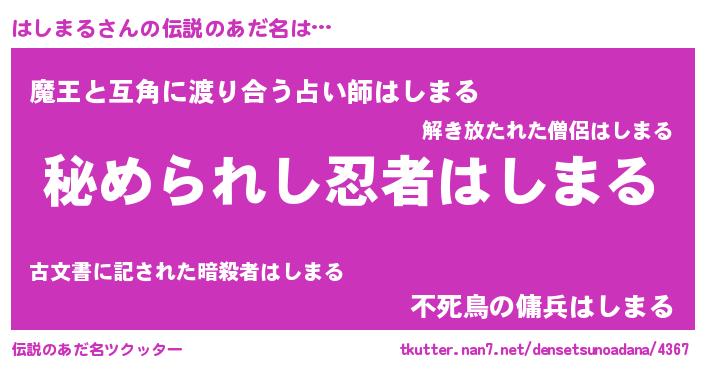 | 女子向けラノベタイトル風あだ名 | 『はしまるなんてお断りですっ。』 |