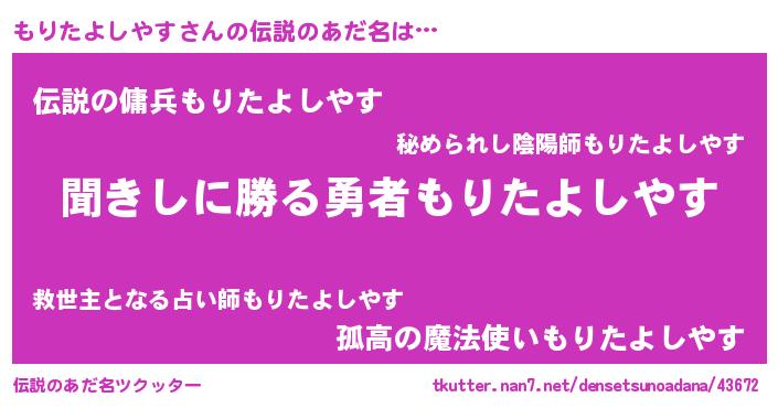 | 意味不明あだ名 | 『永久保存もりたよしやす』 |