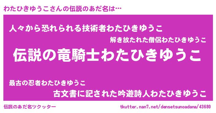 | 男性向けラノベタイトル風あだ名 | 『わたひきゆうこの憂鬱』 |