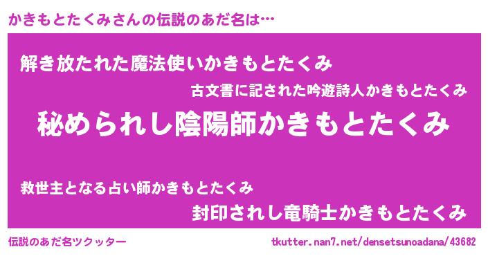 | 意味不明あだ名 | 『かきもとたくみフォーエバー』 |