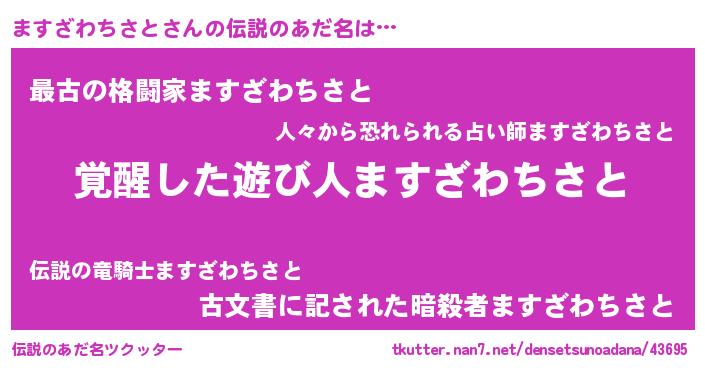 | 男性向けラノベタイトル風あだ名 | 『Re:ますざわちさとから始める異世界生活』 |