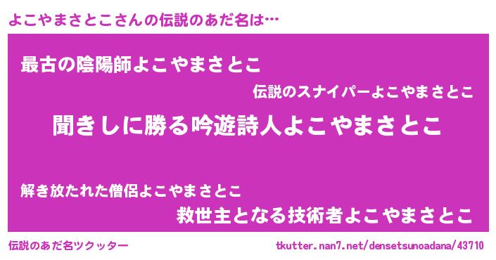 | 男性向けラノベタイトル風あだ名 | 『よこやまさとこという概念が存在しない退屈な世界 』 |