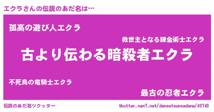 | ヒーロー風カッコイイあだ名 | 『ネオエクラ』『黄金騎士エク』 |