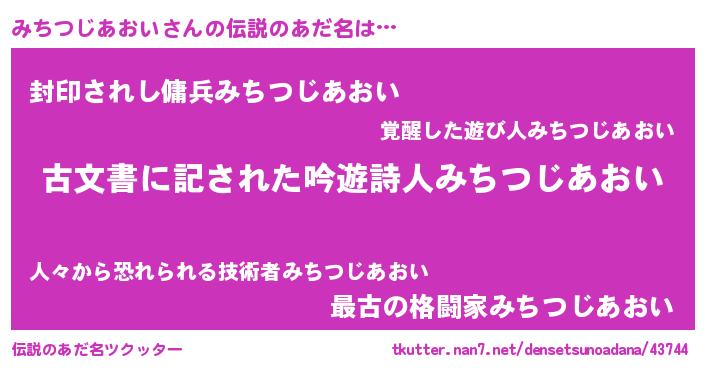 | 男性向けラノベタイトル風あだ名 | 『みちつじあおい~年齢イコール彼女いない歴の魔法使い~』 |