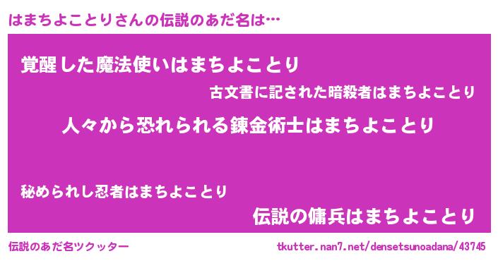 | ヒーロー風カッコイイあだ名 | 『友情の使者はまちよことり』 |