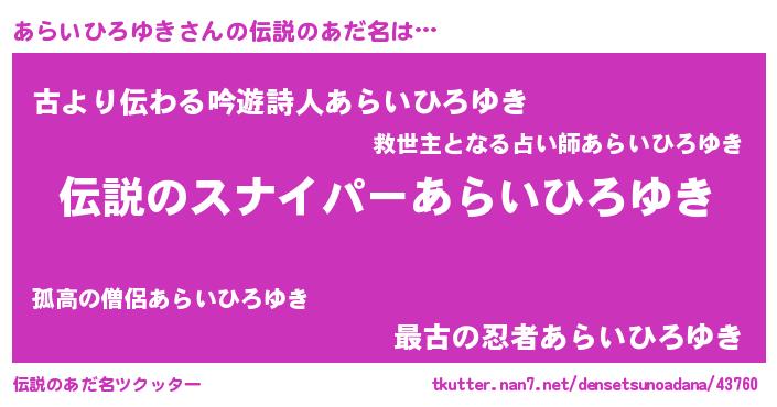 | 意味不明あだ名 | 『自称あらいひろゆき』 |