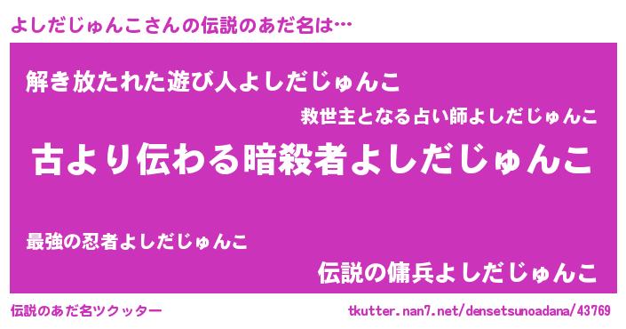 | ヒーロー風カッコイイあだ名 | 『ネオヨシダジュンコ』『幻影騎士ヨシ』 |