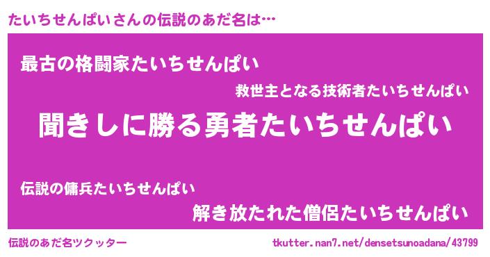 | ヒーロー風カッコイイあだ名 | 『ネオタイチセンパイ』『仮面タイダー』 |