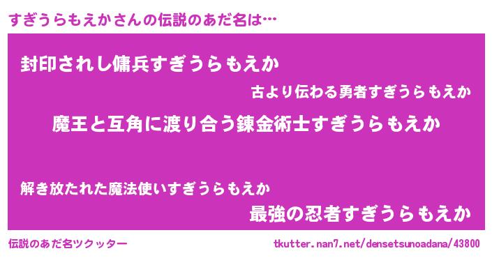 | 女子向けラノベタイトル風あだ名 | 『すぎうらもえか恋絵巻』 |