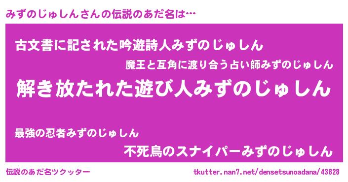 | 意味不明あだ名 | 『とにかく怪しいみずのじゅしん』 |