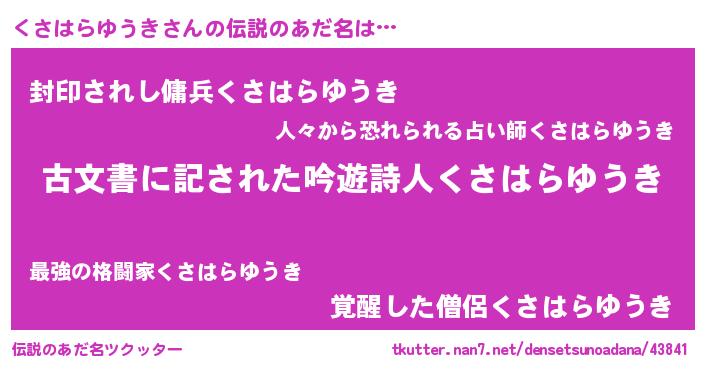| 意味不明あだ名 | 『永久保存くさはらゆうき』 |