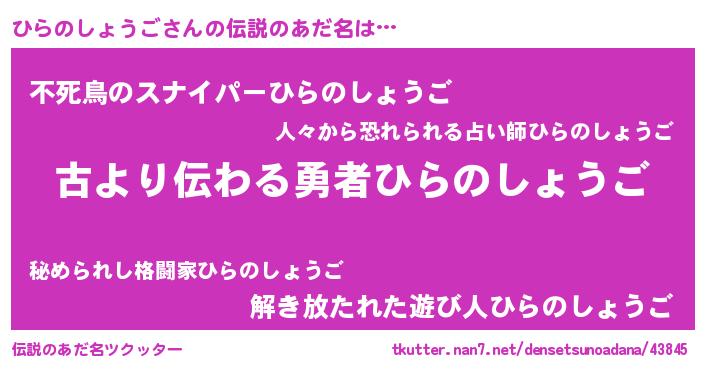 | 意味不明あだ名 | 『自称ひらのしょうご』 |