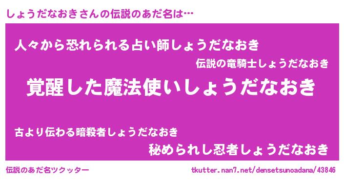 | 男性向けラノベタイトル風あだ名 | 『しょうだなおきの嫁は女の子じゃないと思った?』 |