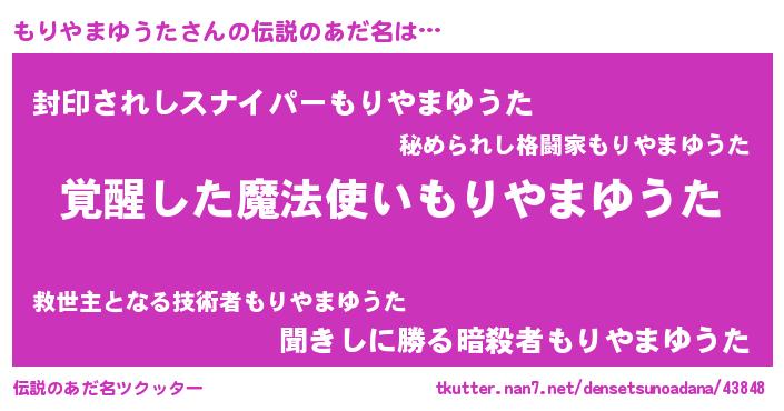 | ヒーロー風カッコイイあだ名 | 『幻影騎士モリ』『ネオモリヤマユウタ』 |