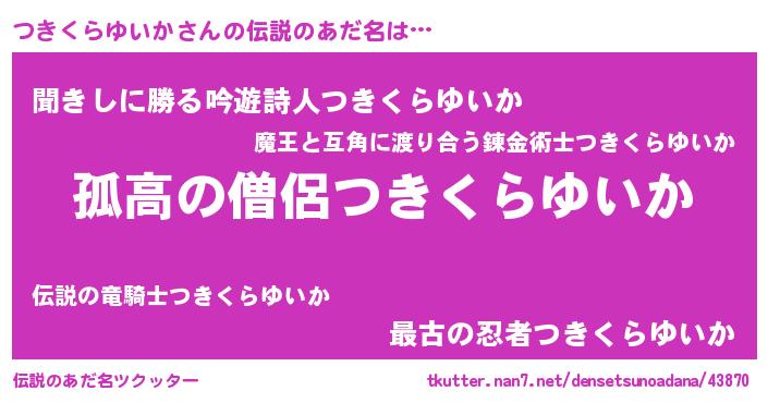 | ポケモン風あだ名 | 『ヒツキクラユイカ』『ゼニツキ』 |